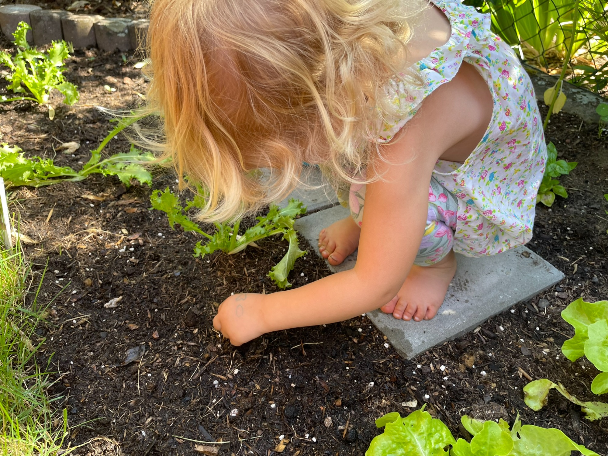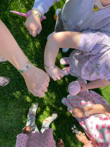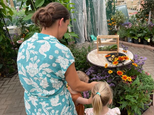 Wir pflanzen einen Sonnenblumenkern und machen Blumenarmbänder.